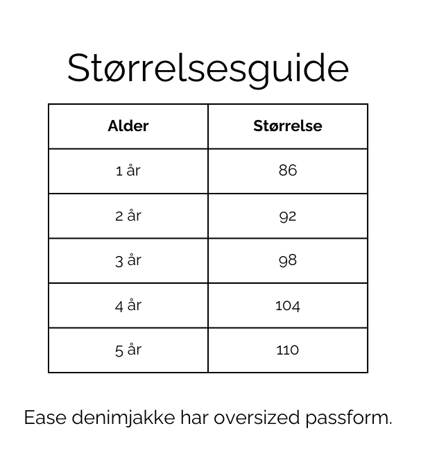 En jakke som følger med på eventyr! Ease Denimjakke er lett, oversized og komfortabel, perfekt for lek, utforskning og hverdagsstil. Slitesterk, men myk – en klassiker i enhver garderobe. Den perfekte jakken til å slenge over Knit genser på vår og høst, og over en lett kjole eller t-skjorte om sommeren. Passformen er løs, som gjør at barnet vil ha glede av jakken lenge.