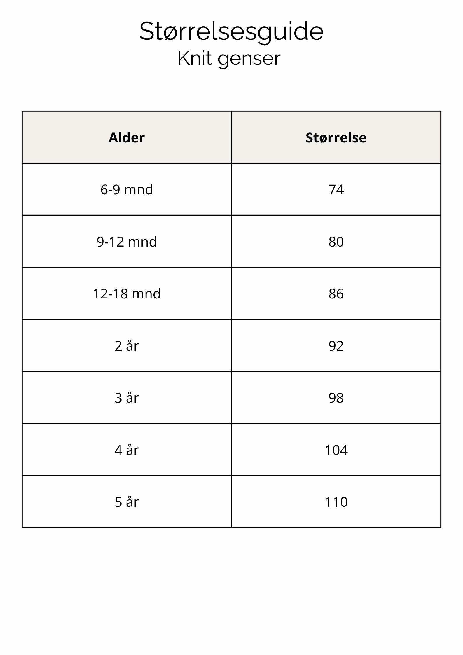 Genseren har en romslig passform som gir et avslappet uttrykk, samtidig som barnet kan bruke den over lengre tid. Velg størrelse etter barnets alder eller se størrelsestabell under.