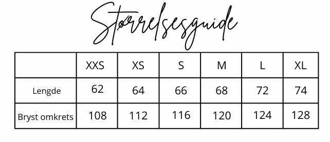 • Vil du ha den litt mindre oversized? Gå ned 1-2 størrelser.
